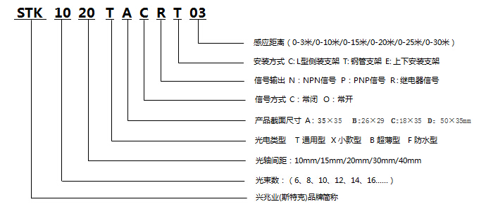 6、輸出方式:P/PS外置控制器,Q內(nèi)置控制器,R光幕內(nèi)置繼電器,晶體管NPN/PNP。
