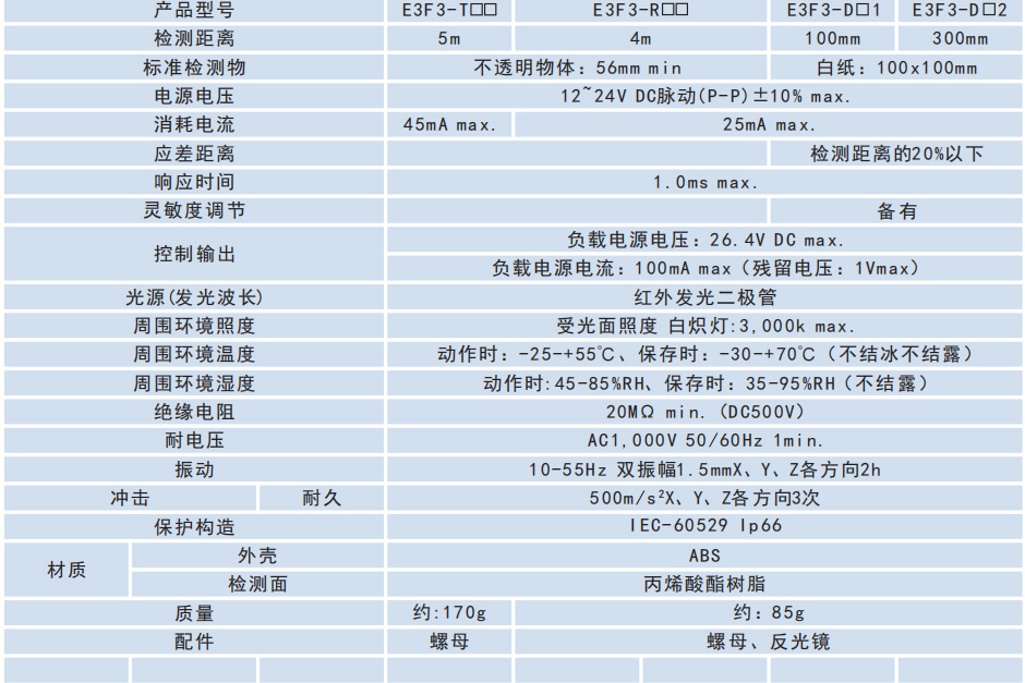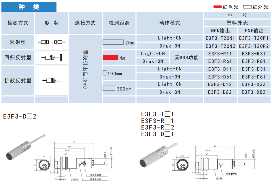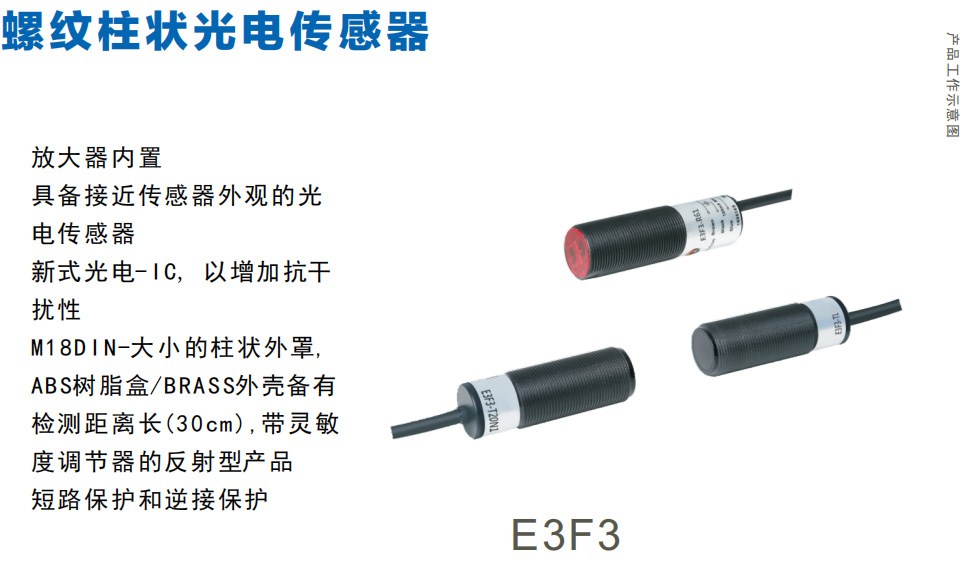 E3F3系列M8螺紋柱狀光電傳感器