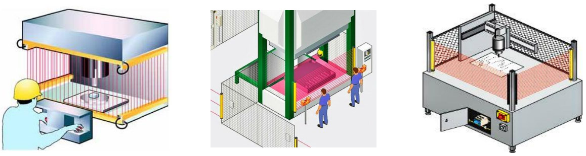自動化設(shè)備、鍛壓機(jī)床、剪切機(jī)器、液壓機(jī)械、機(jī)器人、工業(yè)機(jī)械手、包裝設(shè)備、生產(chǎn)流水線、立體車庫及其它自動化設(shè)備,也可用于多面區(qū)域保護(hù)或防盜等。